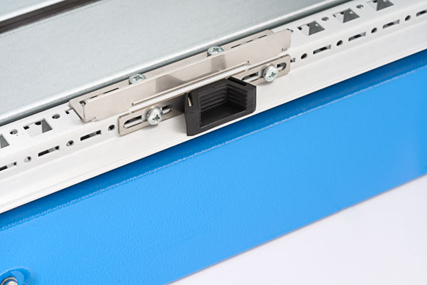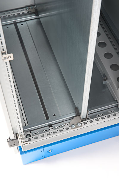 Variable Verschiebung und Fixierung der Montageplatte möglich. Dadurch maximale Ausnutzung des Bauraums bis zwischen die Gestellholme.
